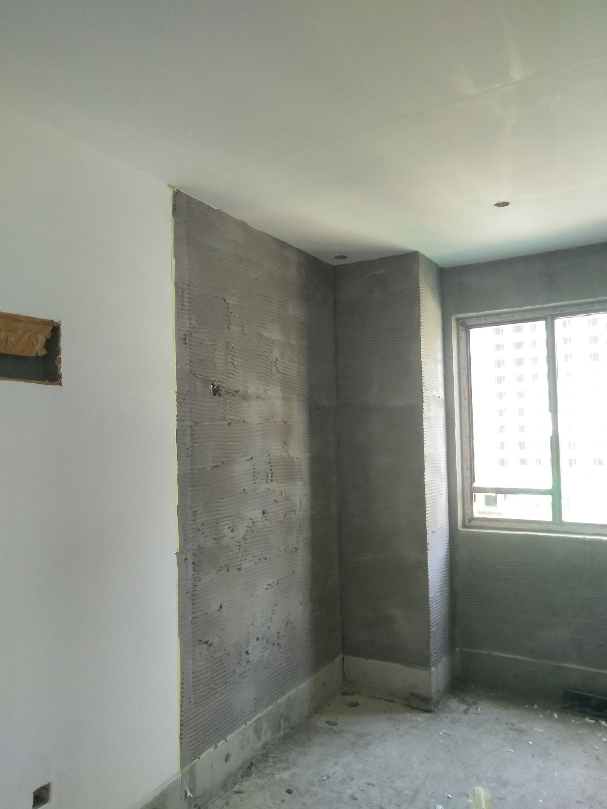 室內(nèi)房間:墻面用抗裂砂漿找平垂直,陰陽下角線,用821膩?zhàn)优椤?/span>