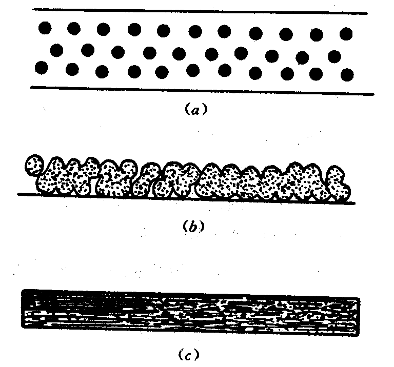 這些顆粒在乳膠漆中以雙電層和屏蔽穩(wěn)定的作用保持著分散的狀態(tài),在施工成濕膜后,水分逐漸揮發(fā),分散著的顆粒逐漸靠攏。當(dāng)接近到某一程度時(shí),鄰近的顆粒就緊緊地?cái)D在一起,失去了運(yùn)動(dòng)的自由而成凝膠狀。在水揮發(fā)將盡時(shí),毛細(xì)管力明顯地起作用了,體積的收縮和毛細(xì)管吸引力足以勝過這些顆粒的分散穩(wěn)定斥力,使顆粒相互接觸、相互吸引、相互流動(dòng)、相互聚結(jié)而成為整體的漆膜。